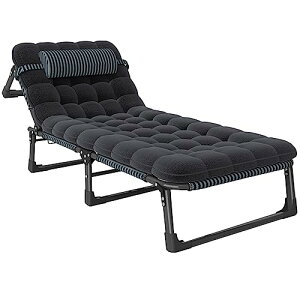 | 折りたたみベッド 簡易ベッド キャンピングベッド 軽量 組立不要 持ち運び便利 4段階調 キャンプや BBQ 仮眠 残業 自宅 客用 防災 アウトドア用 枕付き (パールコットンマット) |
