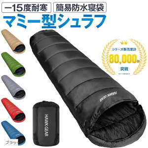 | HAWK GEAR ホークギア 寝袋 シュラフ マミー型 キャンプ アウトドア -15度耐寒 簡易防水 オールシーズン ブラック (ブラック, 39 x 29 x 18 cm) |