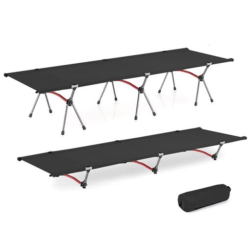 Dominant-Xコットキャンプアウトドアベッド超軽量コンパクト折りたたみ式静音設計耐荷重150kg防水通気性防災車中泊枕と収納バッグ付き(ブラック185CMX60CM)