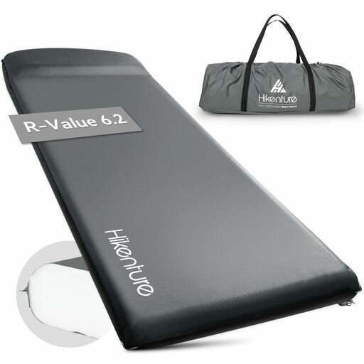 HIKENTUREインフレーターマット【2WAY逆流防止弁・R値6.2】キャンプマットシングル極厚8cm自動膨張エアーマット枕付きアウトドアマット滑り止め加工無限連結車中泊用来客用防災対策持ち運…