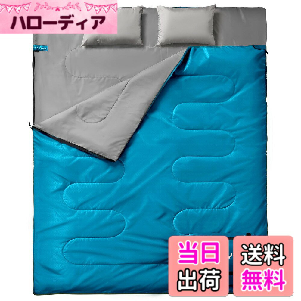 【送料無料】CANWAY 寝袋 2人用 防水シュラフ スリーピングバッグ 封筒型 キャンプ 連結解体可能 車中泊 防災用 自宅用 避難用 コンパクト 最低温度0度 枕2つ・収納パック付 (ブルー)