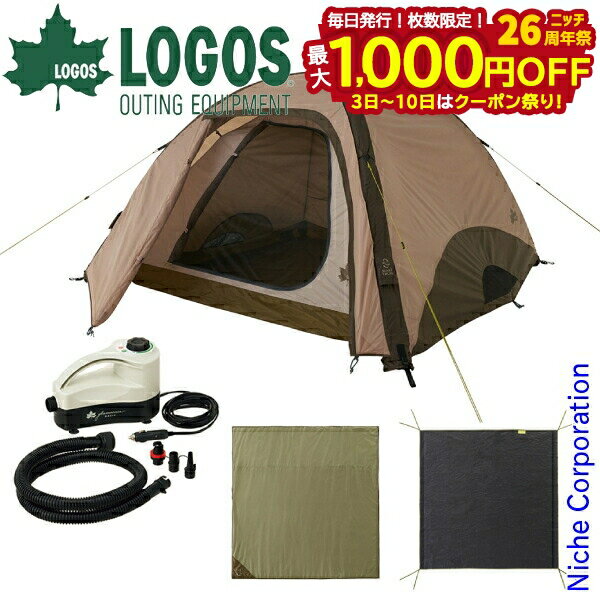 【3日〜クーポン祭!枚数限定 毎日最大1,000円OFF】ロゴス Tradcanvas エアマジックエントリーテントMセット 71805597 電動ポンプ付き 簡単エアテント 4点セット テントマット グランドシートエアーテント 3人用 4人用 nocu 注目商品