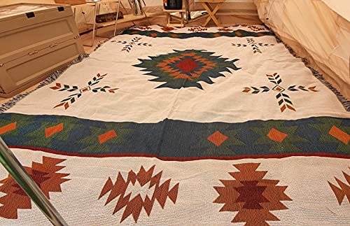 西海岸インテリア ペンドルトン風 キャンプ用品 キャンプのテント中に敷オルテガ柄ラグ マット ネイティブ柄 秋冬キャンプのお座敷スタイル 大判160X220cm…