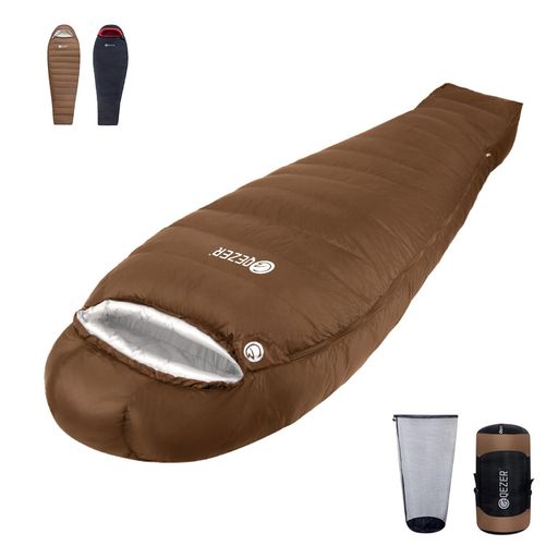 QEZERシュラフダウン寝袋コンパクトマミー型900g/1200gダウン充填冬用寝袋600FP260g/400g充填春夏秋用400T撥水加工2人用に連結可能アウトドアキャンプ登山車中泊防災用