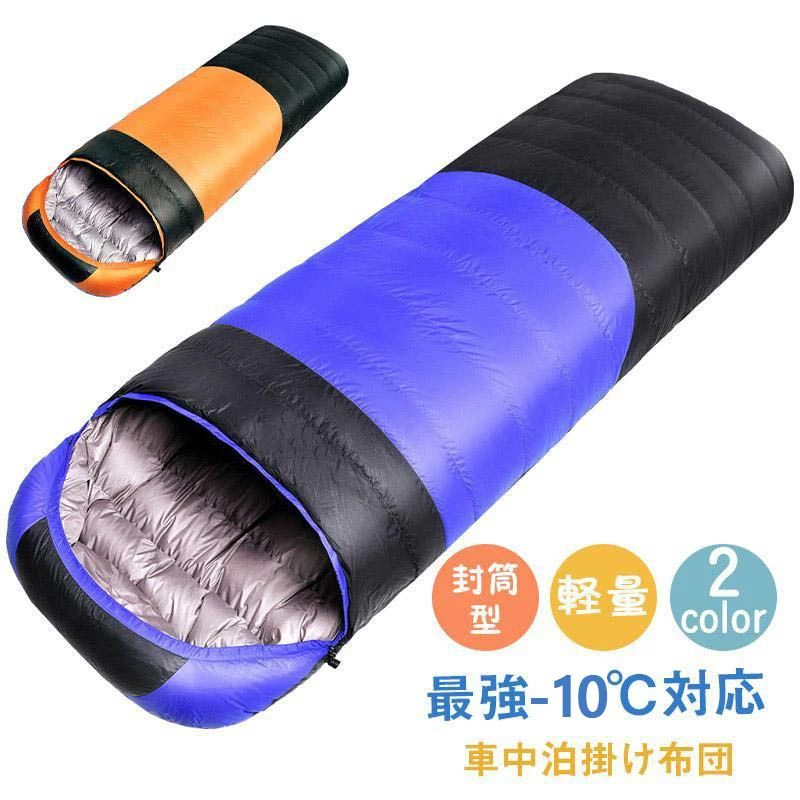 寝袋 冬用 最強-10℃対応 ダウン 暖かい アウトドア 封筒型 シュラフ 人型寝袋 洗える 軽量 コンパクト 車中泊掛け布団 来客用 応援