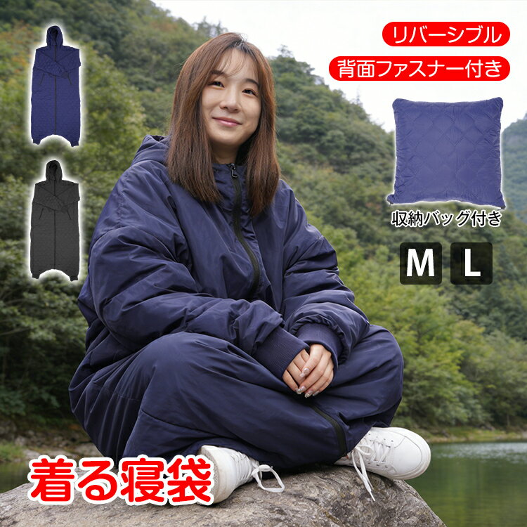 着る寝袋 人型寝袋 寝袋 ウェアラブル寝袋 リバーシブル 防寒 ルームウェア 車中泊 キャンプ 在宅ワーク アウトドア 撥水 軽量 シルク綿 前後ファスナー 背面ファスナー 収納袋付き クッション od664