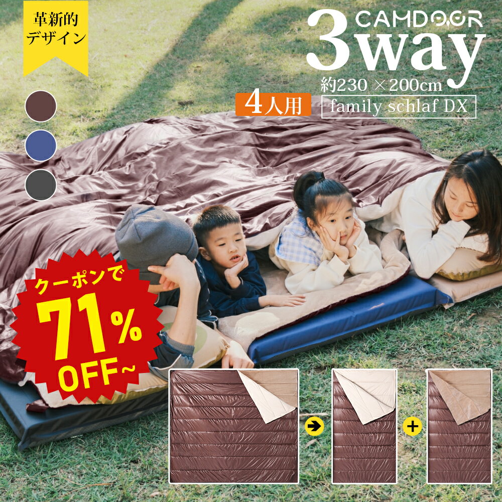 【先行販売24H限定★20%OFFクーポン】寝袋 オール シーズン【使い方自由自在】寝袋 冬用 防災 寝袋3way ファミリー シュラフ 幅広 camdoor 両開きタイプ 家族用 連結可能 大きいサイズ 1-4人用 大型シュラフ 掛布団 来客用 アウトドア 車中泊 収納袋一体式 3sd09