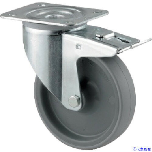 ユーエイキャスター プレート式 自在 キャスター ゴム 車輪径100mm ストッパー付き Jタイプ JB(L)型 取付寸法74×74(67×67) (1個) 品番:WJB-100L