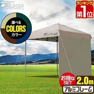 | 【楽天1位】遮光/遮熱モデル追加!FIELDOOR ワンタッチタープテント 2m×2m サイドシート1枚付 横幕セット 軽量 アルミ テント タープ 200 2.0m ワンタッチテント ワンタッチタープ 大型 簡単 UVカット 撥水 日よけ イベント アウトドア キャンプ 1年保証 ★[送料無料] |
