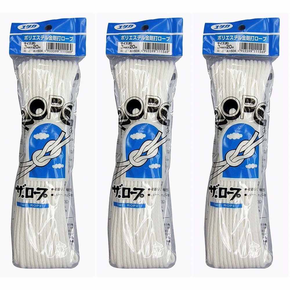 ユタカメイク ロープ ポリエステル金剛打ロープ 3mm×20m 3個セット