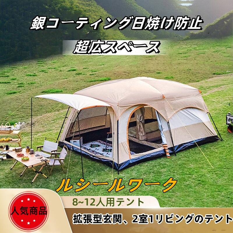 新型テント 8人用 ツールーム ドーム型テント 大型 ファミリーテント 4人用 6人用 8人用 12人用 設営簡単 防風防水 折りたたみ UVカット キャンプ用品 送料無料