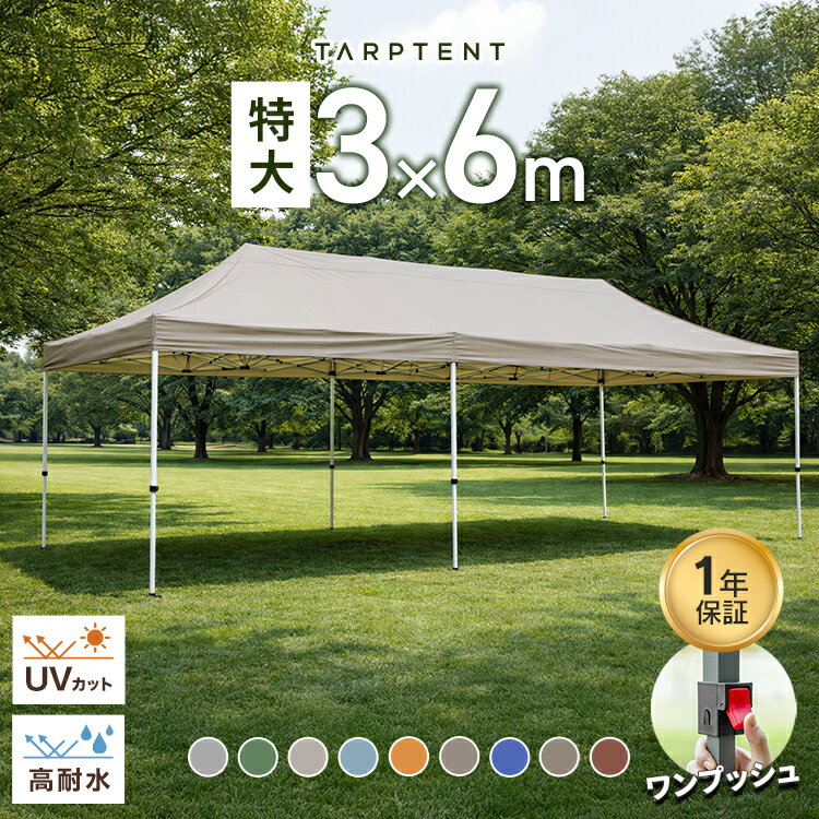 【最大10%OFFクーポン】タープテント 特大 3m×6m センターロック機能付き 高さ調整 耐水圧2000mm アウトドア テント タープ ワンタッチ ワンタッチテント 大型 簡単 設営 UVカット 撥水 日よけ 庭 プール BBQ イベント 運動会 花見
